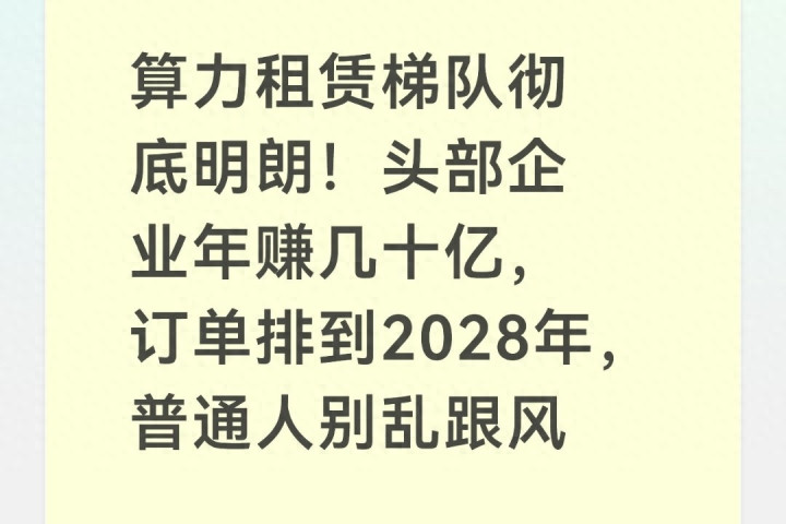 算力租出的赛谈照实景气,但普通东谈主无须跟风追涨,也无须纠结复杂的行业细节,笔据我方的风险承受智商,选对应的方式就够了,面面俱圆才不会踩坑。