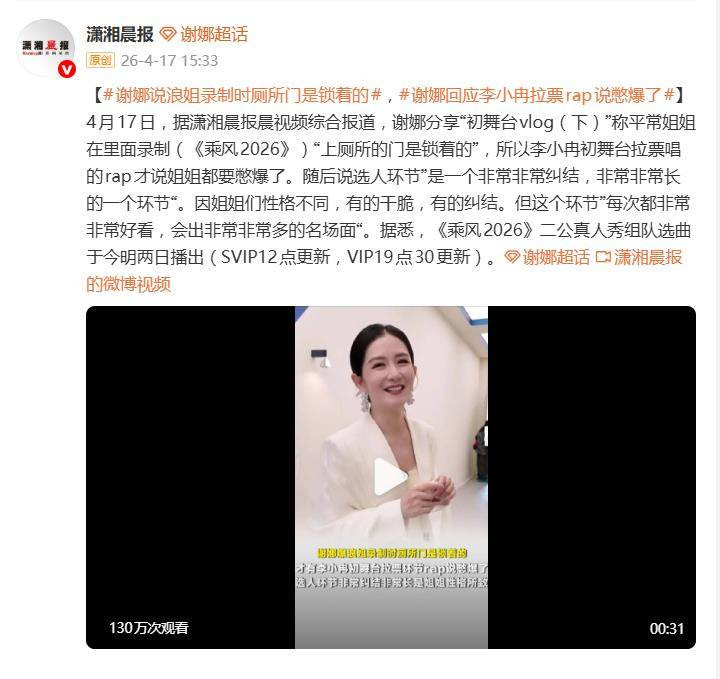 据4月17日报谈,谢娜在共享的《乘风2026》初舞台Vlog里,一个看似随口的爆料,径直让节目组的后勤安排成了公论焦点。正本,姐姐们在录制本事,后台的茅厕门果然是锁着的。