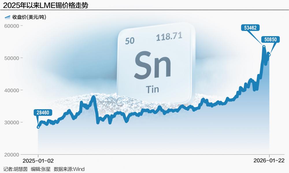 2026年开年以来,锡金属价钱大幅飞腾,伦敦和上海阛阓的锡价均一度飙升至历史最高位。