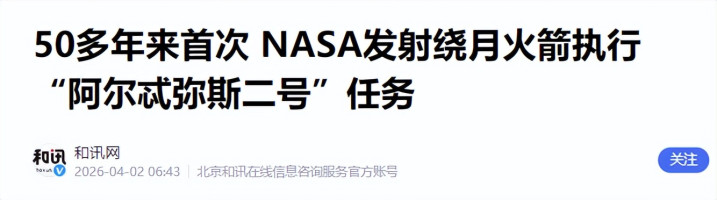 北京时候4月2日,当好意思国“阿耳忒弥斯2号”飞船开启其绕月旅程,将内行的眼力再次引向深空时,这场千里寂已久的月球竞赛,认真从蓝图变成了施行。