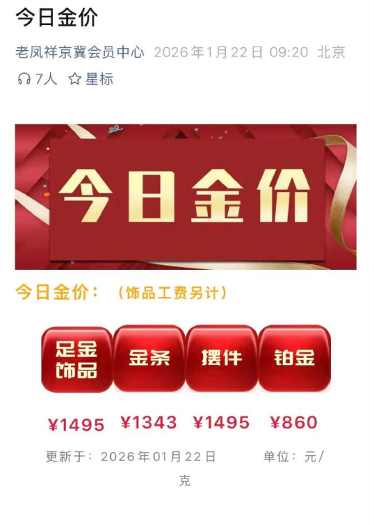 国内金饰方面,价钱执续高潮,多家品牌金饰克价贴近1500元。