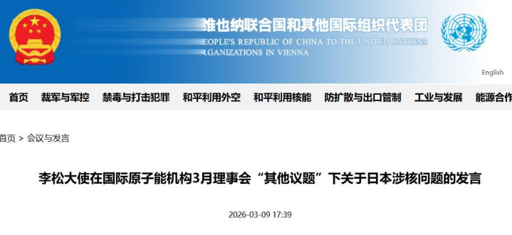 中华东说念主民共和国常驻维也纳集会国和其他国外组织代表团——李松大使在国外原子能机构3月理事会“其他议题”下对于日本涉核问题的发言2026-03-09