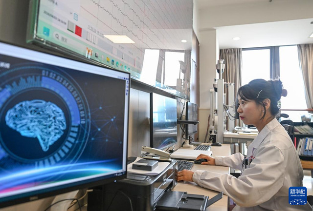 4月10日,逯菀婷医师在电脑前稽察患者的脑电图数据。4月10日,在位于重庆医科大学附属第二病院的西南地区首个脑机接口临床议论型病房,72岁的脑梗患者李清东在医护东说念主员的指点下,佩带无创脑机接口收罗竖立,尝试通过“绽放思象”范式,范围我方瘫痪的左下肢进行通俗算作,完成了一次通过“意念范围”来进行的康复治愈。端梗直今,已有畸形100例瘫痪患者在此体验联系诊疗管事。新华社记者陈诚摄
