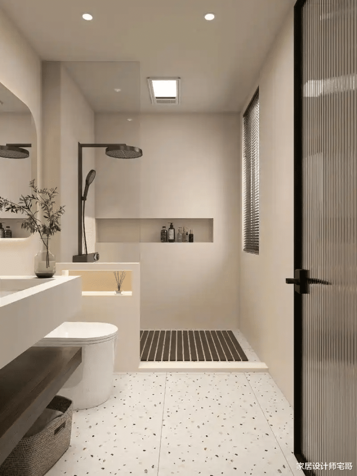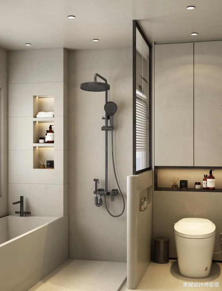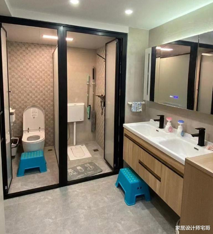 淌若家里的东说念主口多的话,还不错作念成进阶版的三分袂,即是在孤立的淋浴房一侧,大地再加装一个蹲厕。